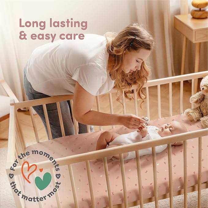 - Easy to Use & Maintain: Our fitted crib sheets girl feature a snug fit design, making them easy to put on and take off without hassle. The stretchy fabric ensures a smooth fit on the mattress, while the high-quality elastic band keeps the sheets securely in place.