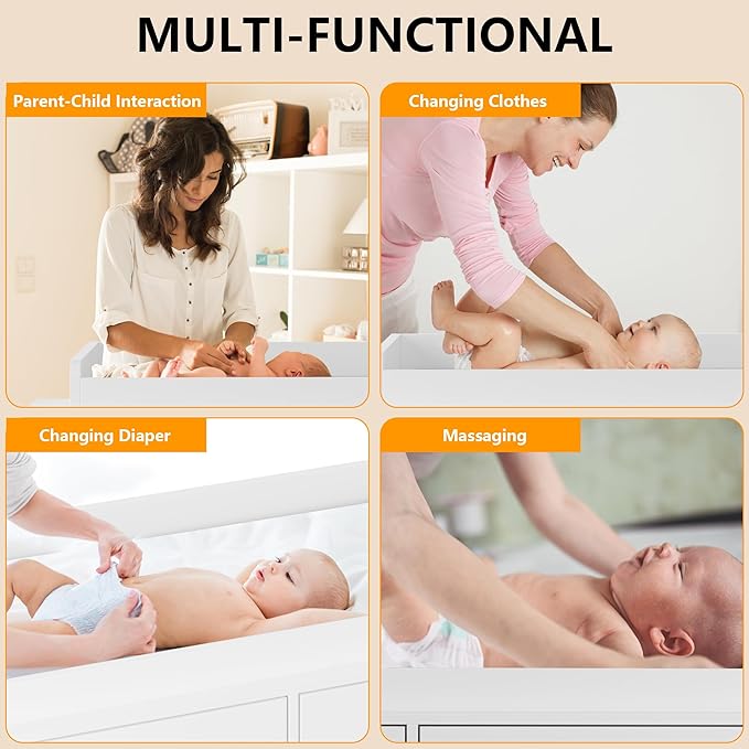 - 【Modern and Elegant Design】Enhance your space with this changing table dresser featuring gold handles, exuding a chic and refreshing aesthetic that effortlessly blends into any room, from bedrooms to offices. This versatile piece serves as a clothing organizer, vanity, or storage cabinet, elevating your decor with a sleek modern touch.