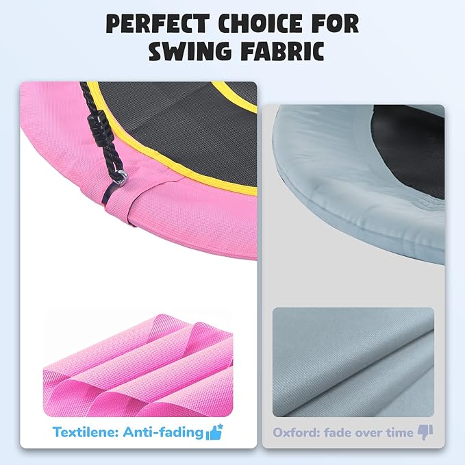 - 【Swing Swivel Included】The swivel feature allows you to freely swing in any direction, adding a new dimension of fun and excitement to your outdoor play. Whether you're looking to enhance your existing swingset or other outdoor play equipments, this circle swing is a great addition