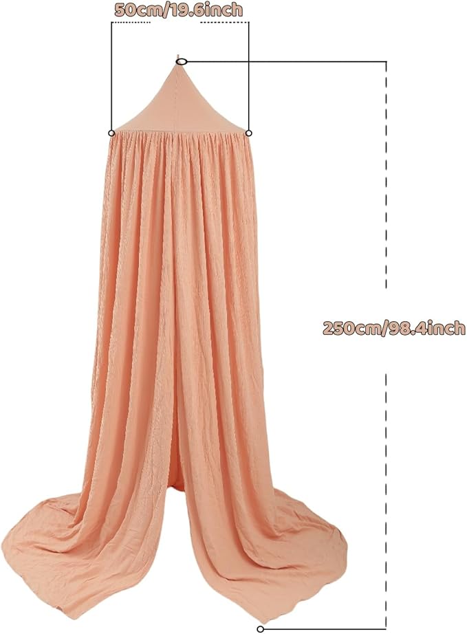 Cotton Kids Bed Canopy, Nursery Room Baby Crib Hanging Curtain Mosquito Net Hideaway Bedding Children Reading Nook Decoration, Pastel Neutral Color for Boys & Girls (Beige)