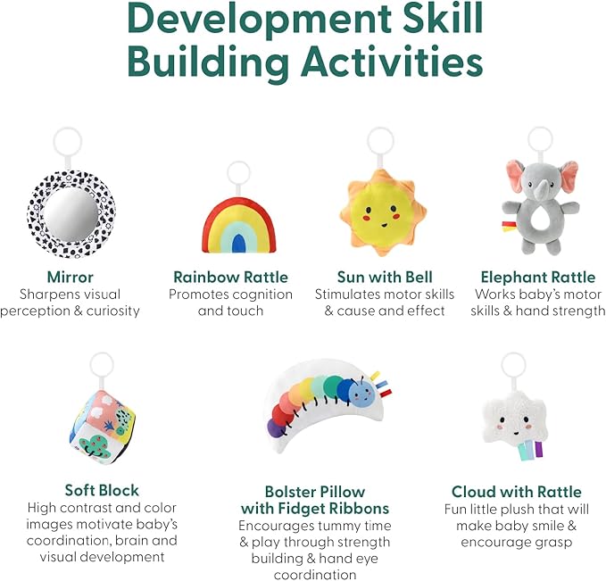 - Easy Assembly: Lightweight and simple to set up, this newborn and infant baby activity gym can be conveniently folded and stored, making it ideal for at-home play or travel.