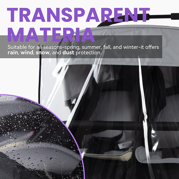 - All-Around Protection: This rain cover can do full pram coverage to protect your child from bad weather, with wind, rain, snow, and dust and sand protection