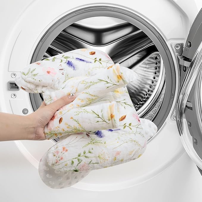 Infant Car Seat Insert, Car Seat Head Support Baby Girls Boys, Soft & Reversible Newborn Carseat Insert Cushion with 2 Strap Covers, for Stroller, Swing, Bouncer (White Wildflowers)