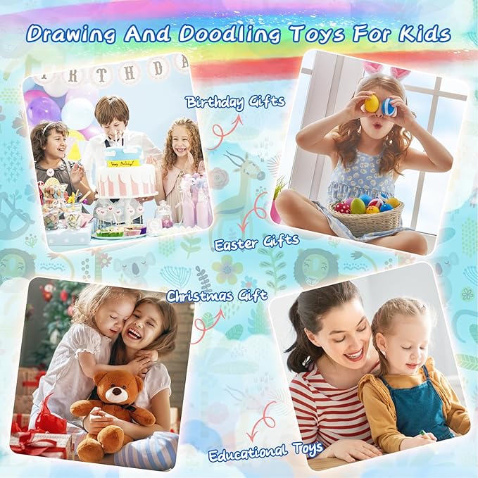 - ๐จChildrens Drawing Magic Book--Kids Erasable Doodle Book Set is 8.6*8.2*0.7 in. Easy to store and carry, perfect for children's school bags. Keep your kids quiet and busy while you travel and enjoy your trip to the fullest!