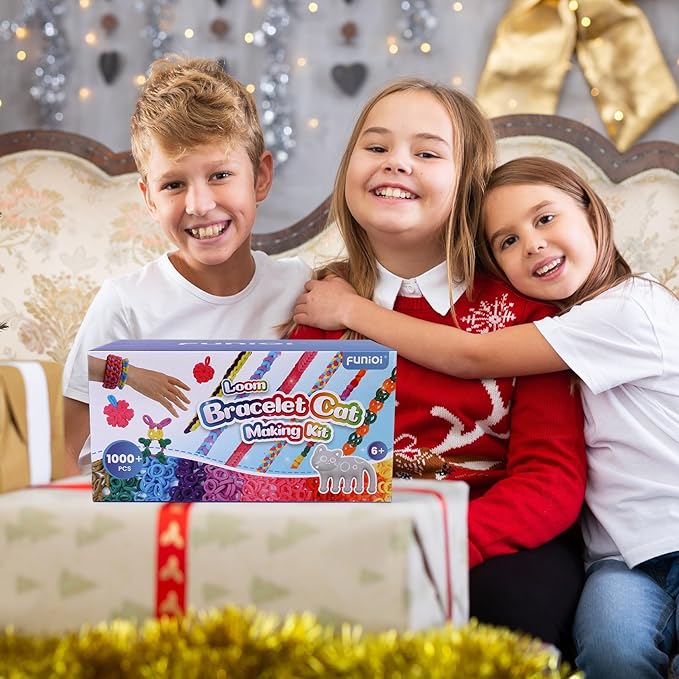 FUNiOi Kids Art and Craft Kit, Rubber Band Bracelet Make Toy, Cat Weaving Comb, 1000+ Colorful Hair Ties, DIY, Organizer Case, Gift for Girls 7-12 Years