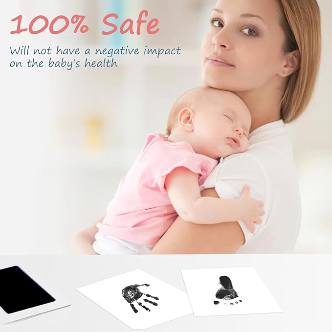 • [Perfect Gifts]: This baby ink hand and footprint kit measures 6.0"x4.2" and has an ink window of 4.9"x3.1".Ideal for newborn baby hand and footprint, use the baby inkless ink pad, you will have personalized baby footprint keepsake, it's not only for baby shower gifts but also for pet birthday gifts.