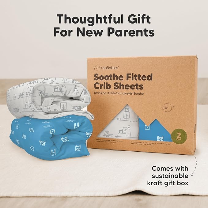 - 2-Pack Baby Crib Sheets - KeaBabies Soothe Fitted Crib Sheets for boys and girls; fit standard crib mattresses (52"x28" with height 3" to 8") perfectly, offering your baby a safe and restful sleep.