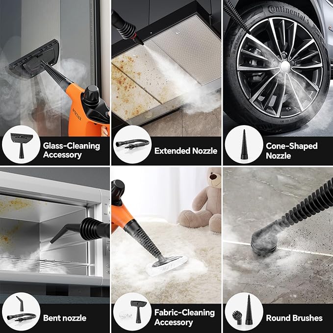 - 【Premium Materials】Constructed with high-temperature resistant PP material, the shell of our steam cleaner provides superior heat insulation, reducing the risk of scalding during use. Additionally, the handheld steam cleaner features a generous 9.8ft power cord, ensuring easy and convenient cleaning throughout your home.