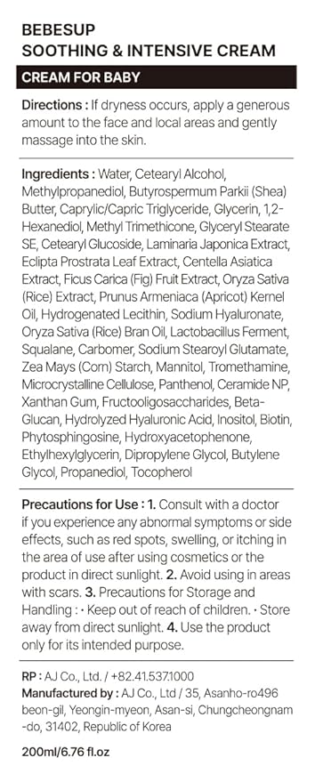 BEBESUP- 베베숲 100-Hour Moisture Barrier Baby Cream | Korean Skincare for Sensitive & Atopic Skin Ceramide Capsule Organic Rice-Infused Hypoallergenic Dermatologist Approved 6.76 fl oz