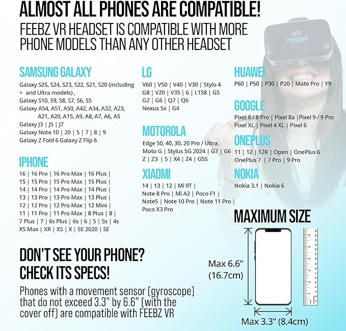 - Compatbility - Feebz VR headset for iPhone & Android model 2.0 fit more phone models than any other VR model