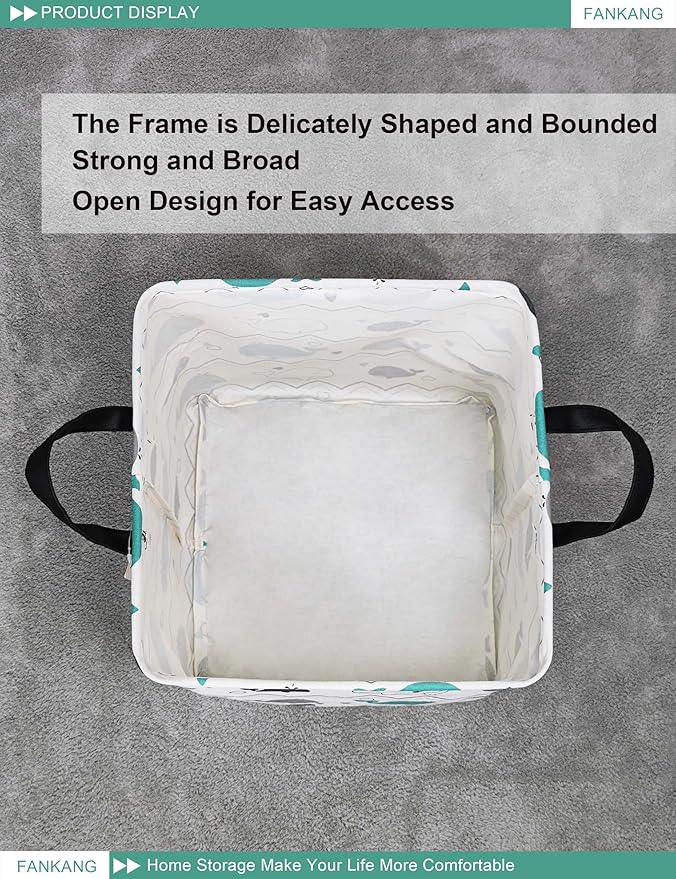 FANKANG Square Nursery Hamper Storage Bins Canvas Laundry Basket Foldable with Waterproof PE Coating Storage Baskets Gift Baskets for Children, Office, Bedroom, Clothes(Square-whales )