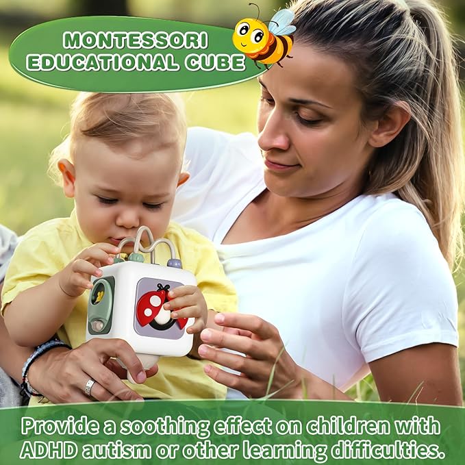 Montessori Educational Insect Busy Cube Toys for 1+ Year Old Boys Girls, Car Seat Airplane Travel Sensory Toys for Toddlers 1-3, 1st Birthday Gifts 6 12 Months