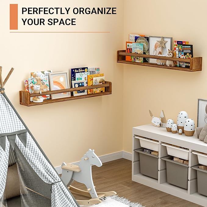 - [Versatile Nursery Shelves] - Heimlove floating shelves offer two installation options, allowing you to mount them either upwards or downwards, effortlessly adapt them to fit any space or aesthetic.They are perfect as a chic bookshelf for a nursery, a display shelf for the living room, or a spice rack for the kitchen.