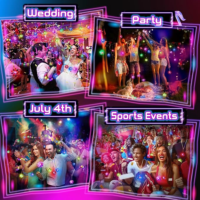 - GLOW PARTY FAVORS: LDE necklaces is a proper choice for carnivals or concerts, bouncing games, and birthday parties, which will add luster to your dark party, making people relax; In addition, it can also be given to others as a gift, game prizes, classroom giveaway.