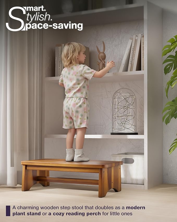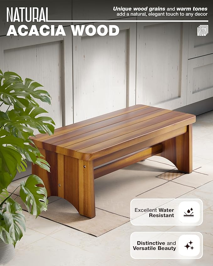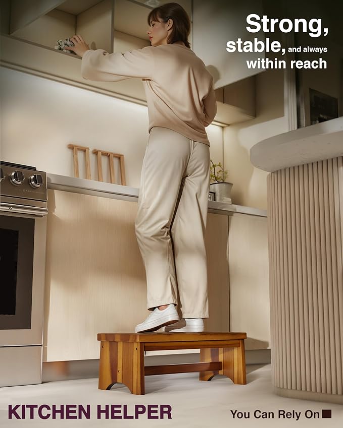 - ๐ณ PREMIUM NATURAL ACACIA WOOD: Expertly crafted from high-quality Acacia wood, this step stool offers superior water resistance, exceptional durability, and a naturally elegant wood grain finish that enhances any room's decor.