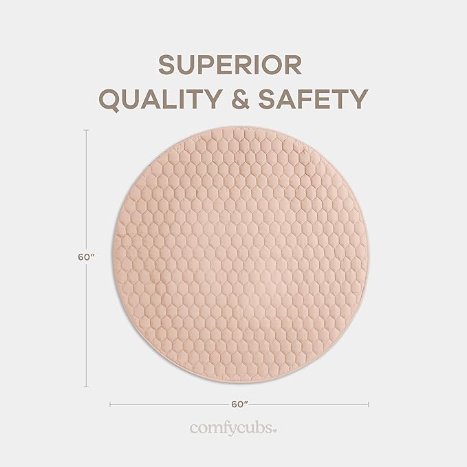 Comfy Cubs Round Kids Play Mat - Large 60 inches Soft Quilted Baby Floor Mat with Non-Slip Bottom - Plush Design for Toddlers' Playtime and Relaxation - Comfortable and Durable - Blush