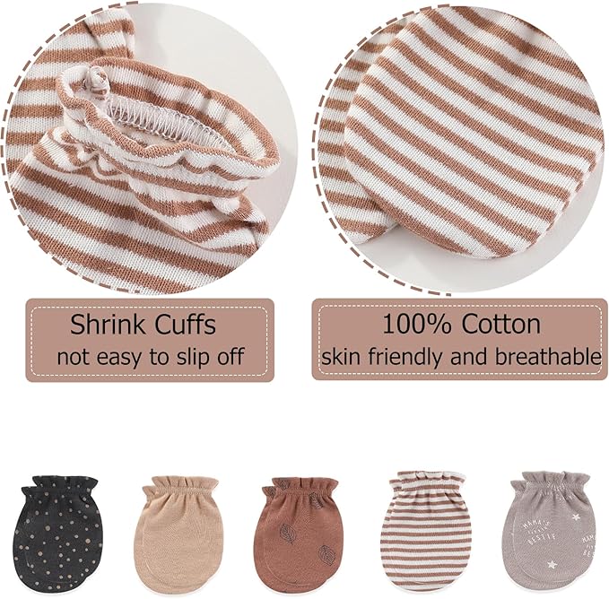 • Little Baby Warmer Set: 5 soft baby hats, 5 pairs of anti-scratch mittens, and 5 pairs of warm socks. Cute pattern theme, natural colors, very cute for matching or independent use