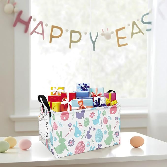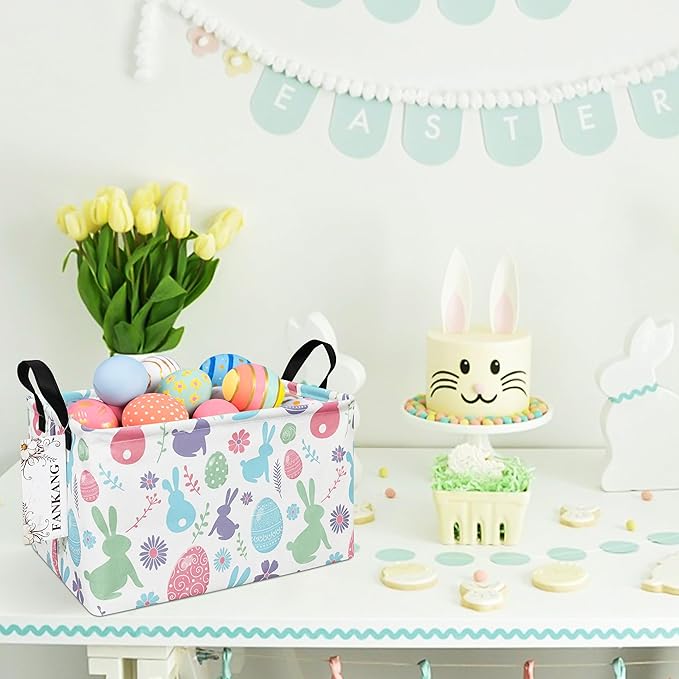 FANKANG Storage Bins, Nursery Hamper Canvas Laundry Basket Foldable with Waterproof PE Coating Large Storage Baskets for Kids Boys and Girls, Office, Bedroom, Clothes,Toys(Rec-Easter egg)