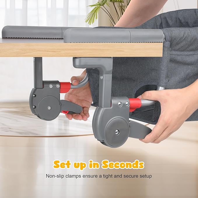 Hook On High Chair: Portable Fast Table Chair with Storage Bag, Clip on High Chairs for Babies and Toddlers, Foldable Baby Feeding Chair with Removable Seat for Home and Travel -Grey
