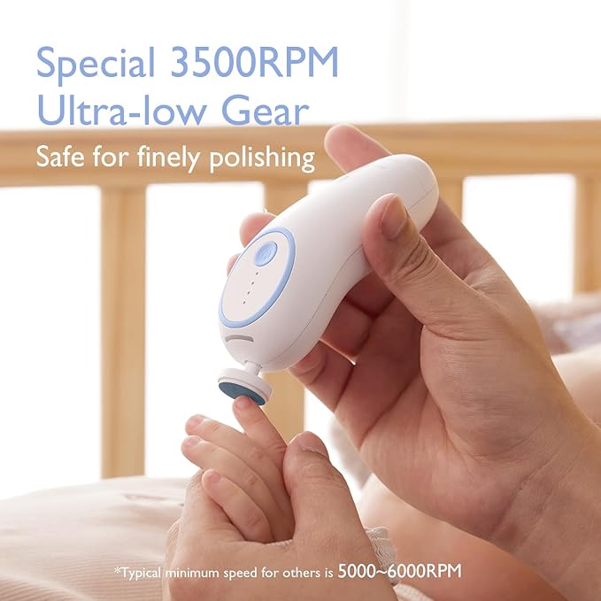 - Safe for Baby - Our nail trimmer can choose 3500 lowest RPM for gentle grooming, touch-and-stop function, preventing the baby's finger injuries from accidental hand tremors of parents