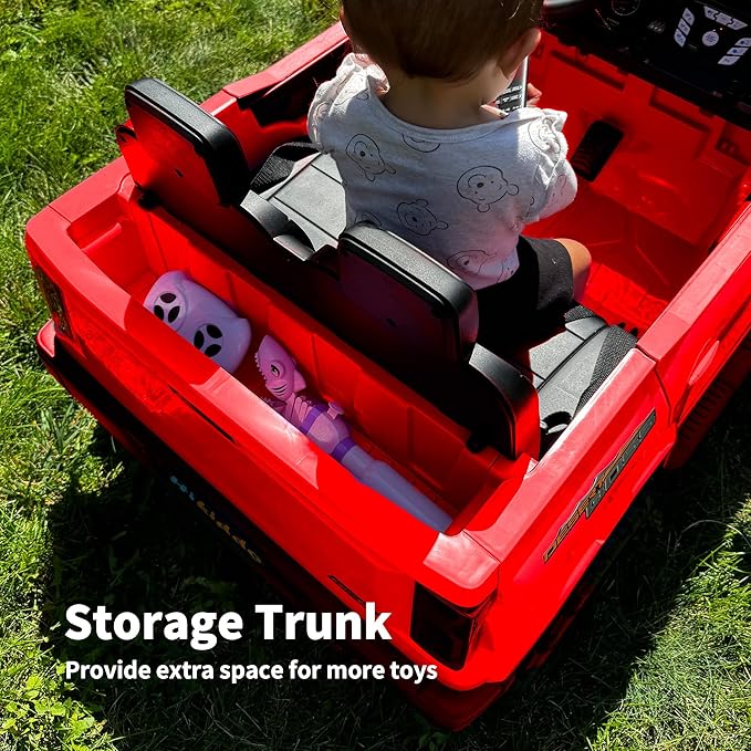- 19" WIDE TWO SEATER: Hikiddo 2 seater ride on car for kids with remote control also allows two children to ride together comfortably with 110lbs Max capacity. Additionally, it includes a storage space for kids to keep their toys.