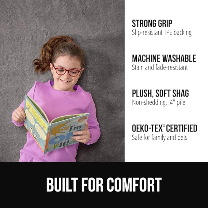 GORILLA GRIP Ultra Soft Washable Area Rug, Stain and Slip Resistant Plush Thick Carpet for Bedroom Living Room, No Shed Floor Rugs, Pet Friendly, Dorm Essentials, Kids Nursery Home Decor, 4x6, Gray