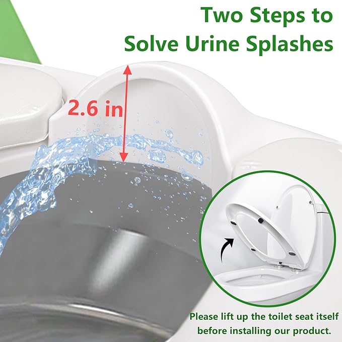 - Splash-proof and Easy to Clean: Lift up the adult toilet seat and place baby toilet seat on the toilet bowl, along with the splash guard that is up to 2.6โ deep to solve the urine splash problem. The removable upholstery can also be easily removed for cleaning for regular care
