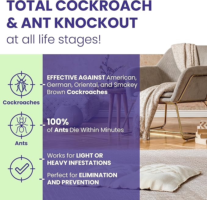 - Easy-to-Use Spray for Targeted Application – This ready-to-use spray can be directly applied around windows, doors, baseboards, under sinks, in cabinets, and other pest-prone areas. Perfect for homes, yards, and patios, it offers continuous bug protection with no residue or stains, keeping your home pest-free with regular application.