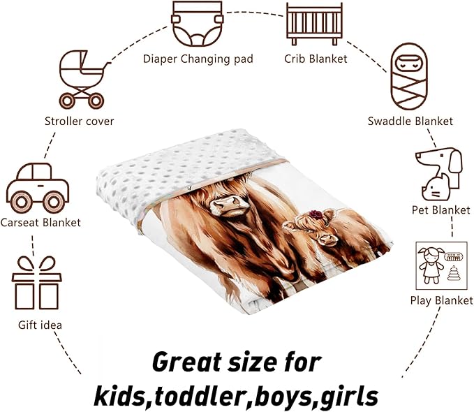 Custom Name Crib Bedding Set - Highland Cow Theme, Personalized Rose Floral Nursery Bedding 3-Piece Set– Soft Blanket, Fitted Sheet, Changing Pad Cover – for Newborns Girls Nursery Gifts