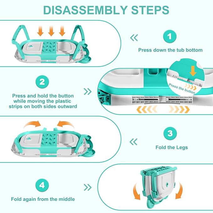 - 【Double-Fold Collapsible Design】Our upgraded baby bath tub can be effortlessly folded in just two steps to a thickness of under 4 inches. It even folds in half, enabling convenient storage in any corner, making it a space-saving solution.