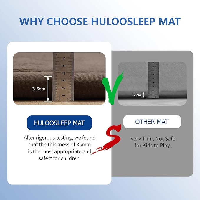 - FITS TO MULTIPLE OCCASION】:This versatile mat works as a yoga mat, tatami rug, and is compatible with floor heating. It provides a cozy spot for adults to relax, doubles as a pet-friendly cushion, and absorbs sound to reduce noise. With 35mm thickness, it enhances your bedroom or living room. Unlike typical plastic play mats, the HulooSleep Crawling Mat blends seamlessly with home decor, offering both functionality and elegance in one.