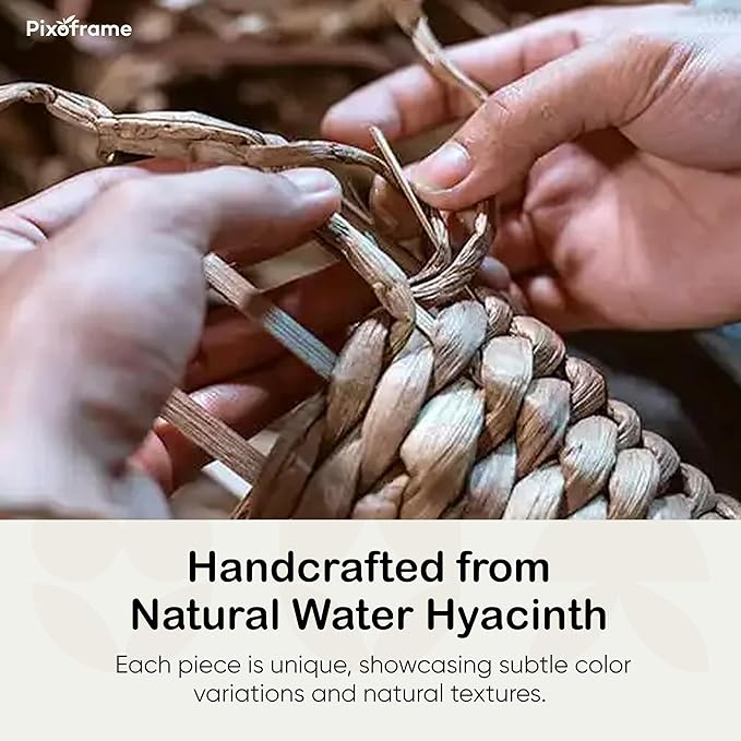 - Handcrafted from Natural Water Hyacinth: Made from 100% natural water hyacinth, this basket brings a rustic touch to your decor. Each piece is unique, showcasing subtle size variations and natural textures, making it a beautiful addition to any setting.