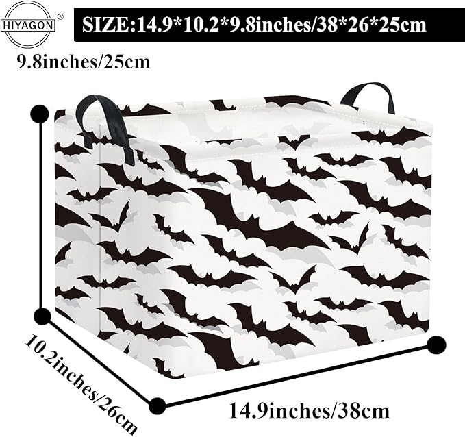 HIYAGON Rectangular Batman Basket Kids Storage Basket Kids Baby Nursery Basket for Boys Bat Room Decor Cute Toy Storage Organizer Bins Bedroom(Bats)