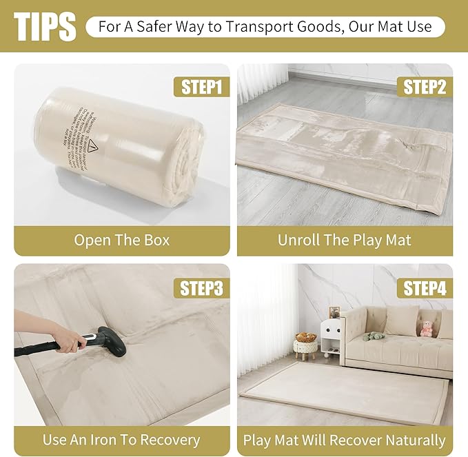 - 【Easy to care 】: The 74x50 inch playpen mat can be folded to easily store your playpen mat. When you open it, it has creases, bumps. Don't worry, you can recover your playpen mat with steam or ironing