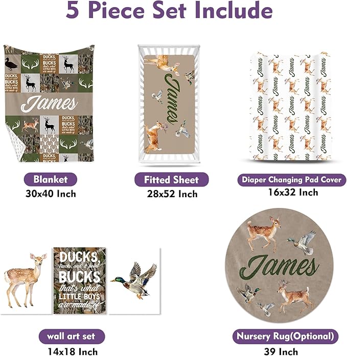 - Complete Nursery Set: Transform your baby's nursery into a dreamy and enchanting space with our 5-piece baby crib set. It includes a baby blanket, crib fitted sheet, baby rug, diaper changing pad cover and a set of coordinating wall art to coordinate your nursery décor effortlessly.