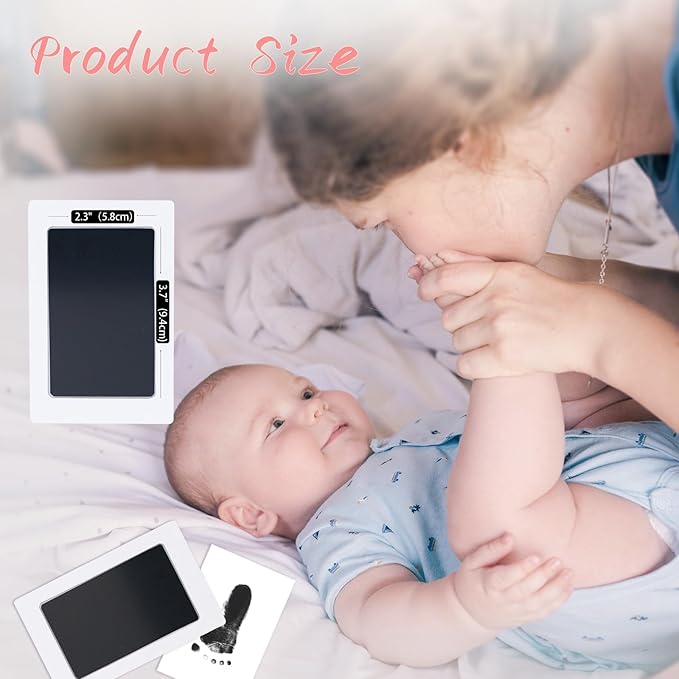 • DIY easy to use: This footprint kit for baby is easy to use. New moms only need to put their baby hands and feet on this inkless ink pad. This ink pad for baby hand and footprints measures 5.0"x3.2" with an ink window of 3.7"x2.3",which is perfect for your baby hands and feet, leaving a perfect imprint.