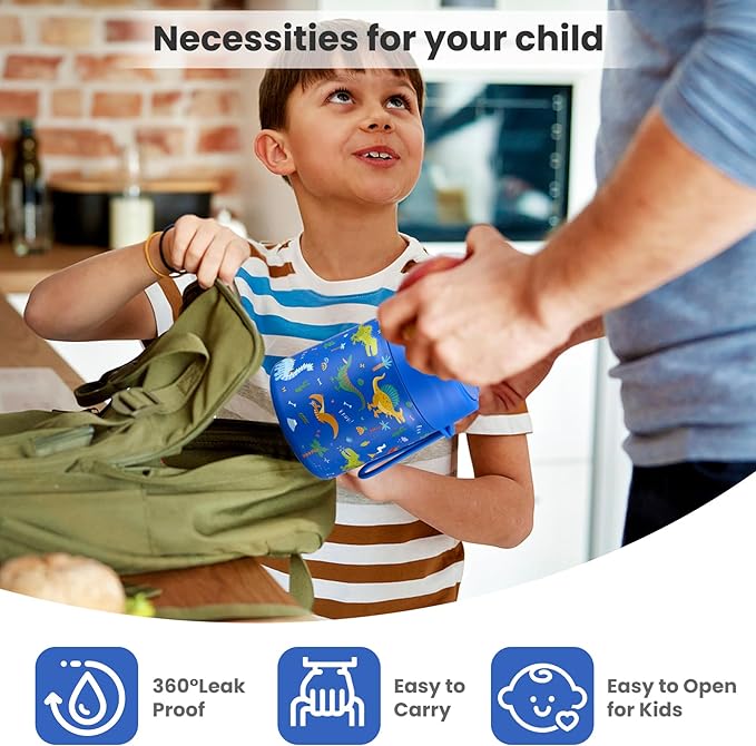 - Leak-Proof Design: Featuring an upgraded double-layer silicone seal that provides a 360° leak-proof guarantee. Rest assured that our leak-proof thermo food jar can fit in your lunch bag without worrying about spills. The insulated thermal food jar comes with a stainless steel spoon for your child's convenience.