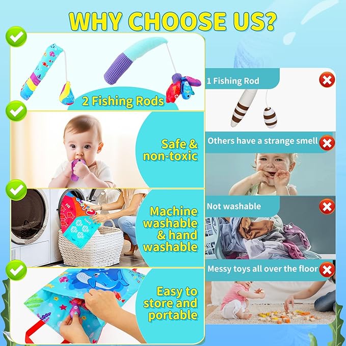 - - Safe and Durable: Crafted from high-quality, child-friendly materials, our baby fishing toy for 3 years and up ensures a safe play experience. Soft textures make it gentle for tiny hands, providing peace of mind for parents while their children explore