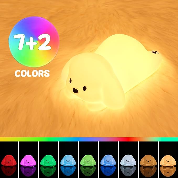LOVERUIS Night Lights Squishy Light Dogs Colorful Night Light for Kids 1/3 Hours Timer Dimmable Puppy Gift Kid Dog Cute Decor