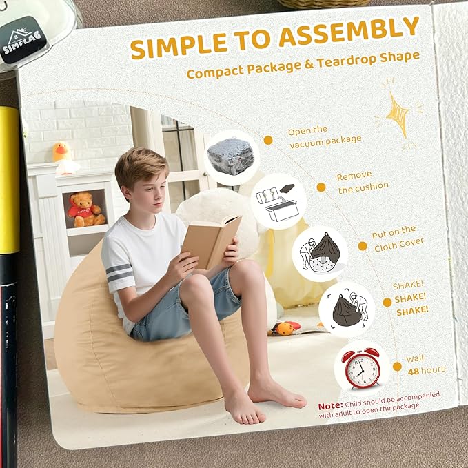 - WIDELY USE FURNITURE: Bean bag chairs is ideal for watching movies, studying, reading, gaming, napping, or just chilling, and is the perfect addition to every space, playroom, kid's room, living room, office, or school dorm.