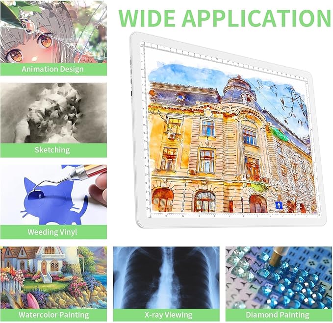 - [Multi-Craft Essential with Full Accessories]: This light board is Ideal for tracing, weeding, diamond painting, drawing, sketching, 2D Animation, X-ray viewing etc. LED light pad streamlines precision work. Includes USB-C cable, 4 magnets, and illustrated guide. Gift-ready packaging makes it perfect for artists, teachers, and hobbyists. If you are not satisfied with your purchase, please contact us, we will reply you within 24 hours