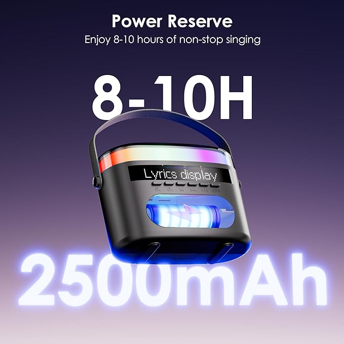 - Wireless Connectivity & Universal Compatibility: Pair devices instantly via cutting-edge Bluetooth 5.3 (50ft range) while dual mics auto-sync for zero-lag duets. Flexible connectivity options include USB/TF card slots, AUX input, and compatibility with Android, iOS, TVs, tablets, and car stereos - making this your ultimate portable karaoke hub.
