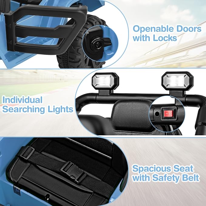 - 【Safe & Reliable Construction】 Constructed from BPA-free material, the electric ride on truck is equipped with adjustable safety belt, lockable doors to ensure durability and safety. It complies with ASTM and CPSIA standards, serving as a reliable and perfect gift for boys and girls over 3 years old.