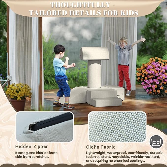 jela Foam Blocks 6Pcs Soft Play Equipment Waterproof Fabric, UV Resistant Toddler Climbing Toys Indoor& Outdoor Soft Play Climbing for Toddlers, Lightweight Climbing Blocks for Babies, Kids (Sand)