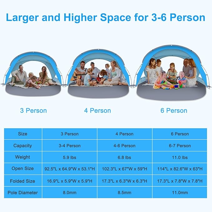 - UPF50+ Protection: Featuring silver-coated fabric, this beach shade is engineered with superior Anti-UV sun protection, effectively blocking at less 98% of harmful UV rays, ensuring you and your family enjoy comfortable and cool days at the beach