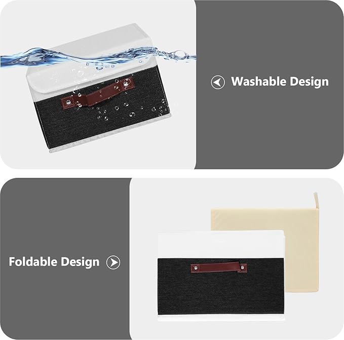 ANMINY 4PCS Storage Boxes with Lid Washable Decorative Storage Bins Basket with PU Leather Handle Foldable Linen Fabric Storage Cubes Containers for Home Closet Organizer - Black White, Small Size
