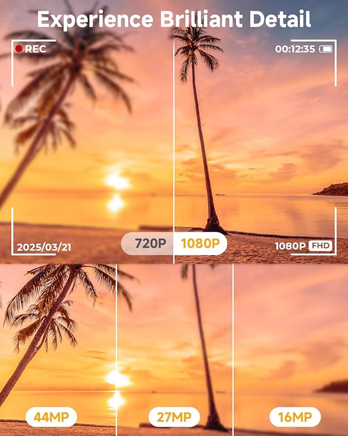 - 【44MP Photo & 1080P FHD Video】:This compact digital camera is equipped with Upgrade CMOS technology ensures precise detail. Mini camera support 44MP photos and 1080P UHD video recording and features a 2.4inch Ultra HD display. It comes with a 32GB memory card to record fun and memorable moments at any time.