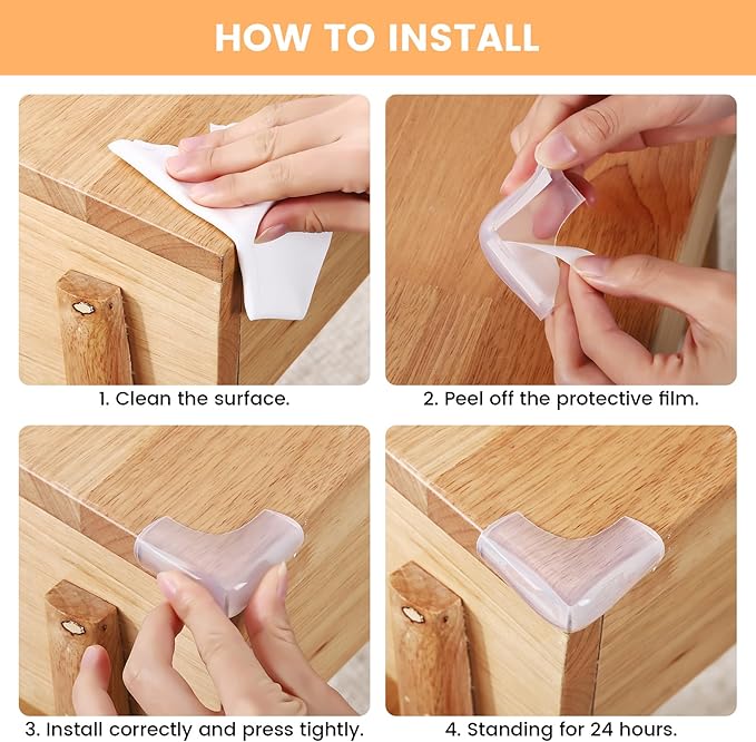 - 【No Harm to Furniture】 Don't worry about the damage to furniture, our corner guards will protect indoor tables, cabinets, shelf, dresser, cupboard, kitchen counter, door, chairs, fireplace, and outdoor corners. Also, the upgraded gel-adhesive will help you easier to clean when removed ( for quick and better clean, please use a hot towel or hair-dryer to preprocess firstly)