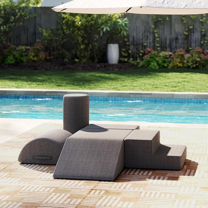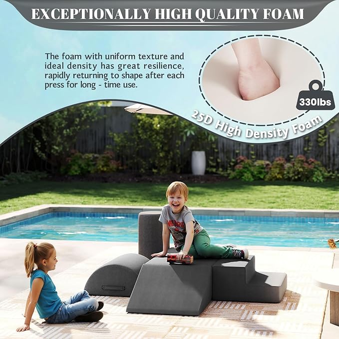 jela Foam Blocks 6Pcs Soft Play Equipment Waterproof Fabric, UV Resistant Toddler Climbing Toys Indoor& Outdoor Soft Play Climbing for Toddlers, Lightweight Climbing Blocks for Babies, Kids (Darkgrey)