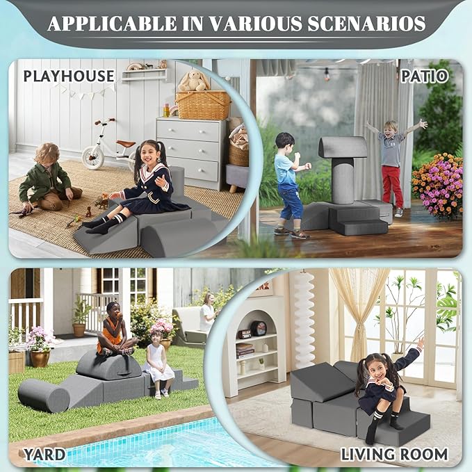 - Waterproof and Stain-resistant Fabric:The jela climbing blocks with upgraded Olefin waterproof fabric have dual protection against moisture and UV rays. This soft play set can be placed freely in children's rooms, on terraces, or in courtyards, allowing children to play without restrictions. In the face of situations like juice spills or mud stains, they can be easily wiped clean, continuously creating a hygienic play environment for children.